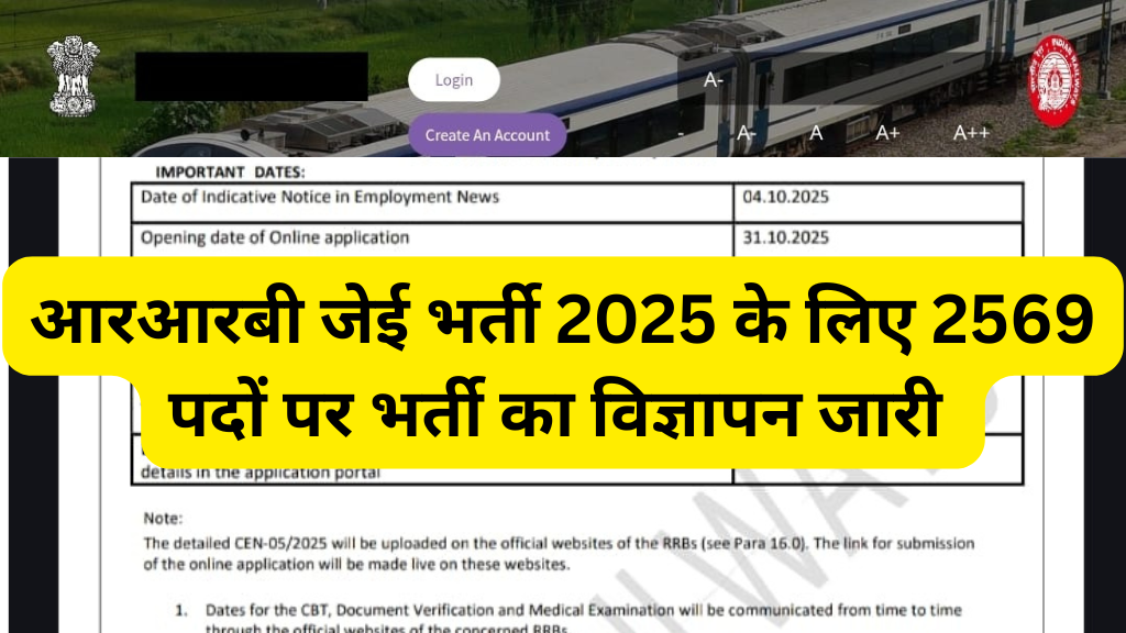 Railway Junior Engineer Recruitment 2025 आरआरबी जेई भर्ती 2025 के लिए 2569 पदों पर भर्ती का विज्ञापन जारी