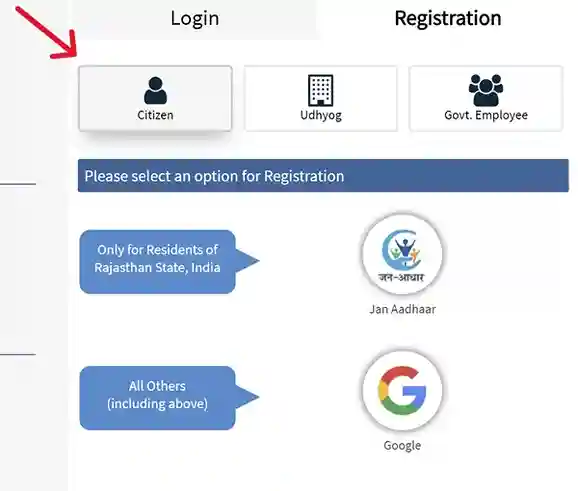 - “रजिस्ट्रेशन” बटन पर क्लिक करें जन आधार कार्ड का उपयोग करके अपना खाता बनाएं